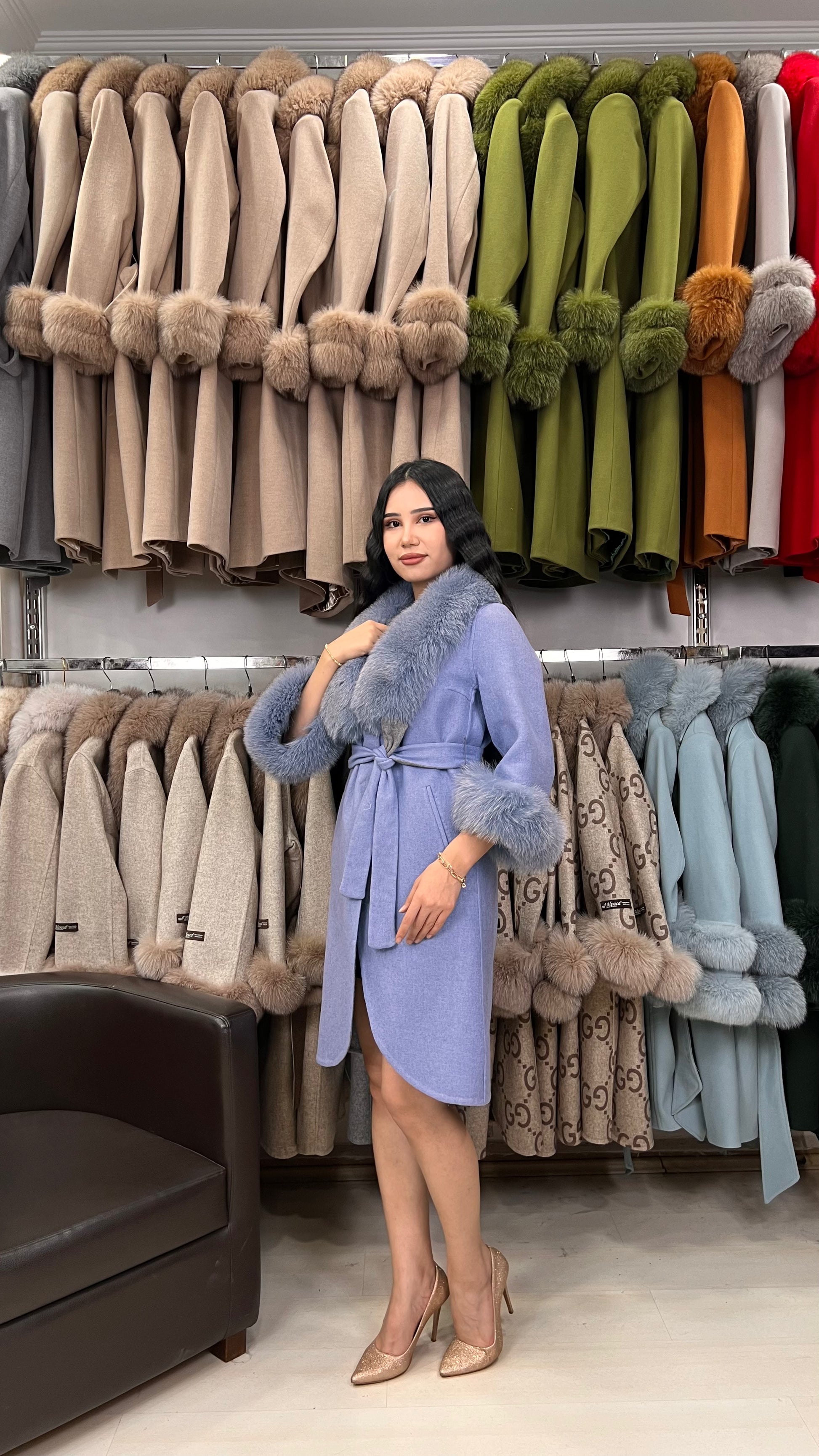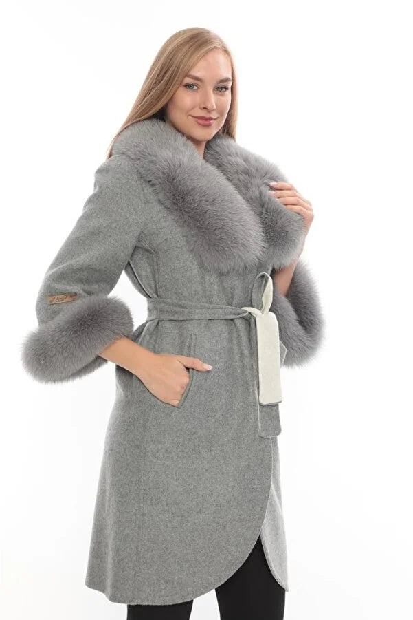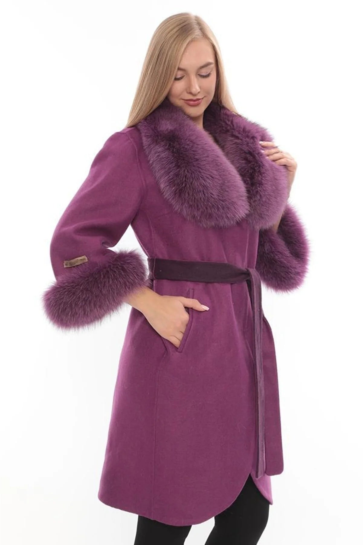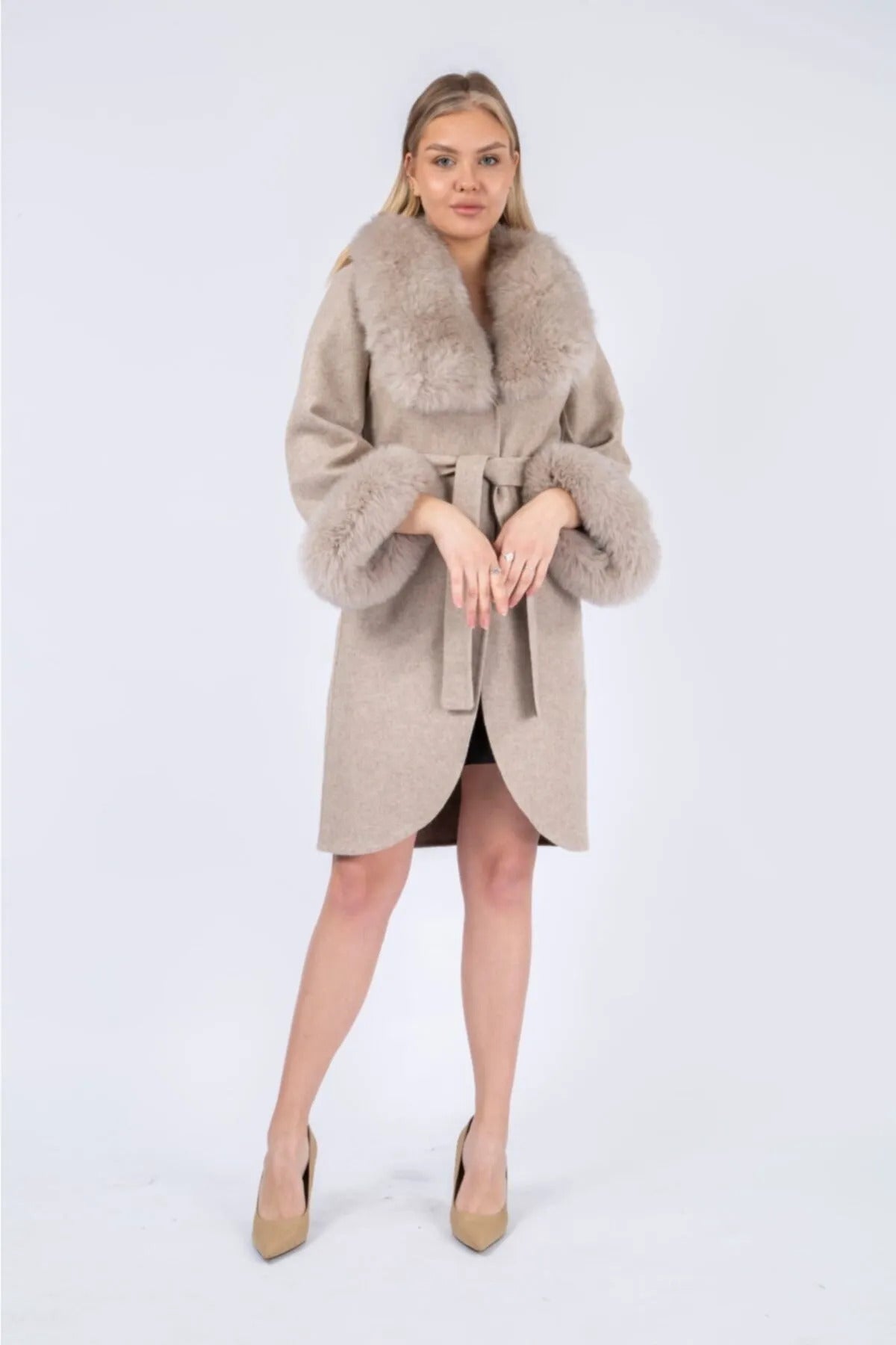 Kadın Hakiki Tilki Aksesuarlı Alpaka Kaban/Mont BDC101 (Geniş Kalıp)