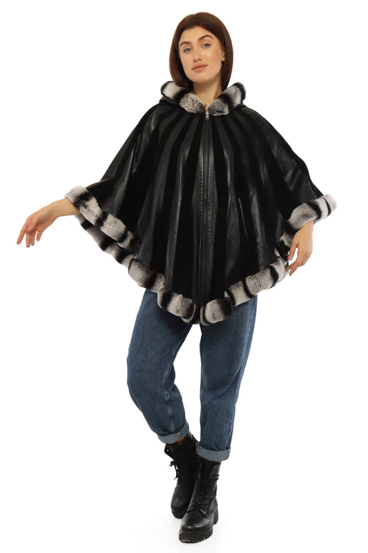 Kadın Çift Taraflı Hakiki Deri Kürk Panço BDC35 (Oversize)