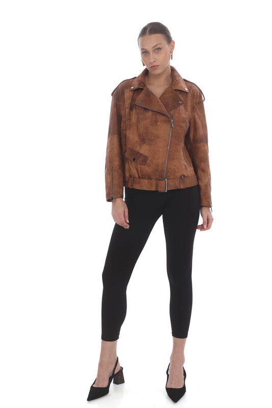 Kadın Astarlı Hakiki Kuzu Derisi Mont/ceket BDC140 (Geniş Kalıp)