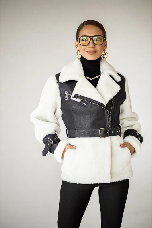 Kadın Hakiki Deri Beyaz Kürk Manto BDC113 (Geniş Kalıp)