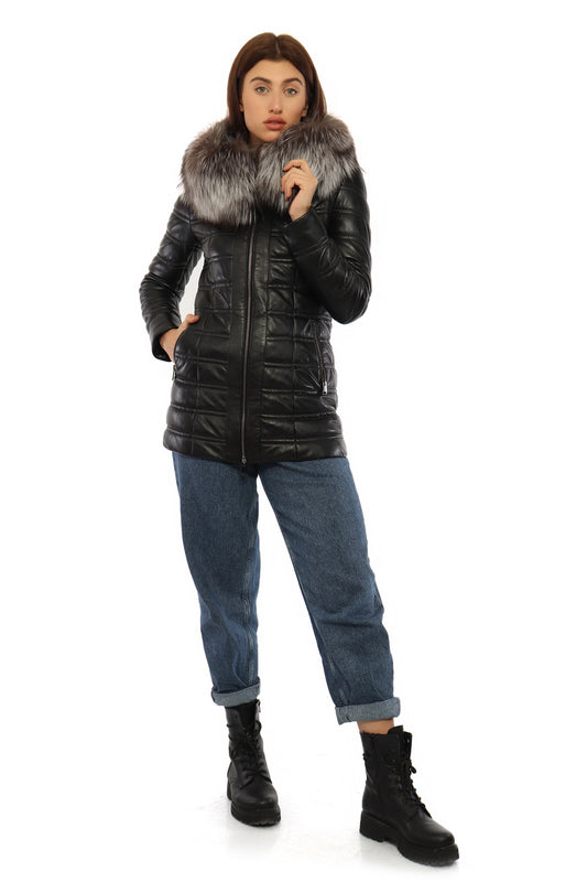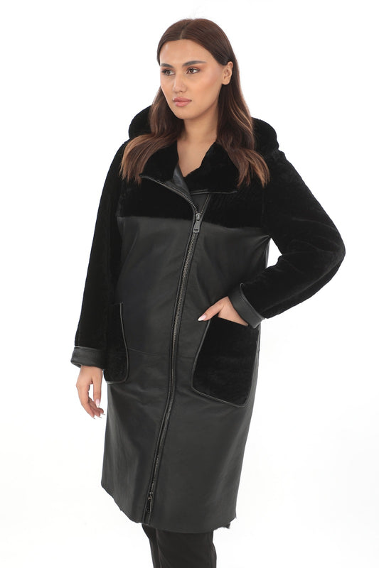 Kadın Hakiki Deri Kürk Kaban BDC181 - (Standart Kesim)