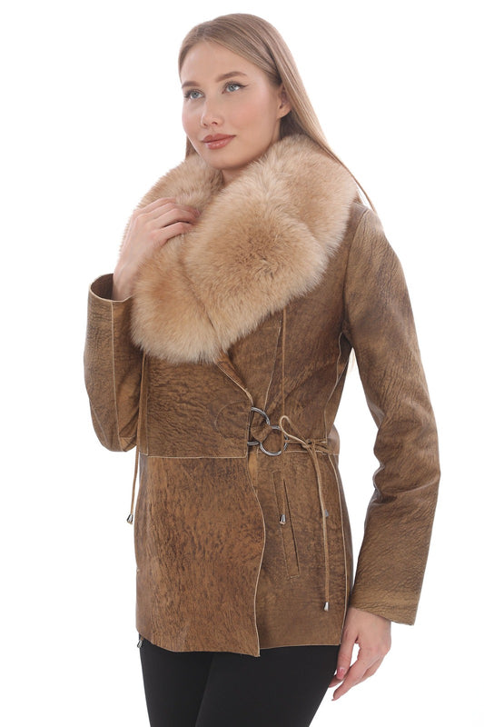 Kadın Hakiki Koyun Derisi Ceket Mont BDC232 (Dar Kesim)