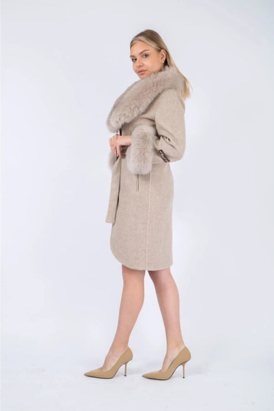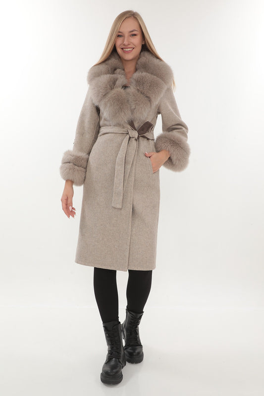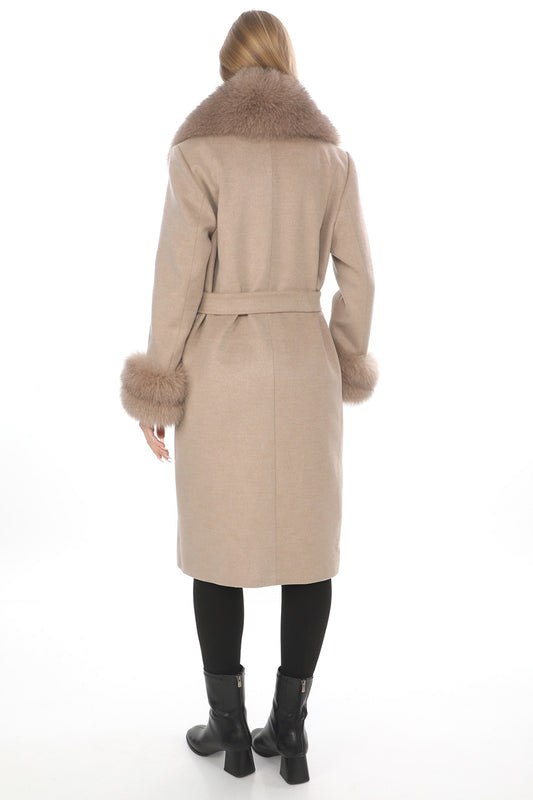 Kadın Hakiki Tilki Aksesuarlı Kaşmir Kaban/Palto BDC126 (Standart Kalıp)