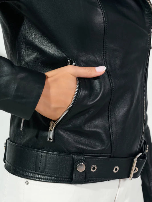 Kadın Kısa Kemerli Deri Ceket/Mont BDC109 (Dar Kesimdir)