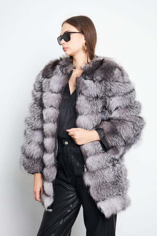 Kadın Hakiki Tilki Kürkü Manto / Mont BDCKRM01