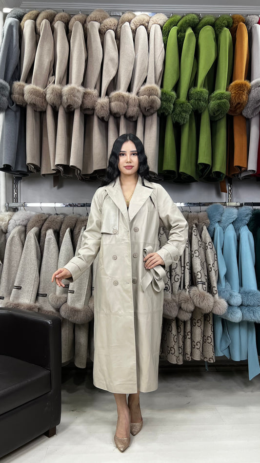 Kadın Hakiki Kuzu Derisi Trençkot Deri OZEL3 (Geniş Kesim)