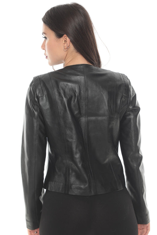 Kadın Kısa Siyah Arjantin Yakalı Kısa Deri Mont/Kürk BDC128 (Dar Kalıp)