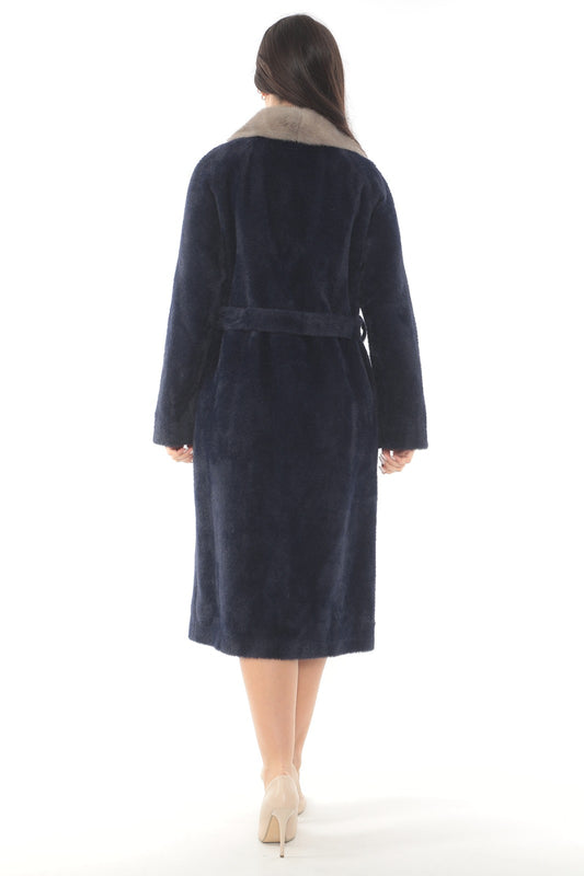Women's Alcantra Fabric Collar Mink Fur Coat/Overcoat BDC127 (Standard Cut)