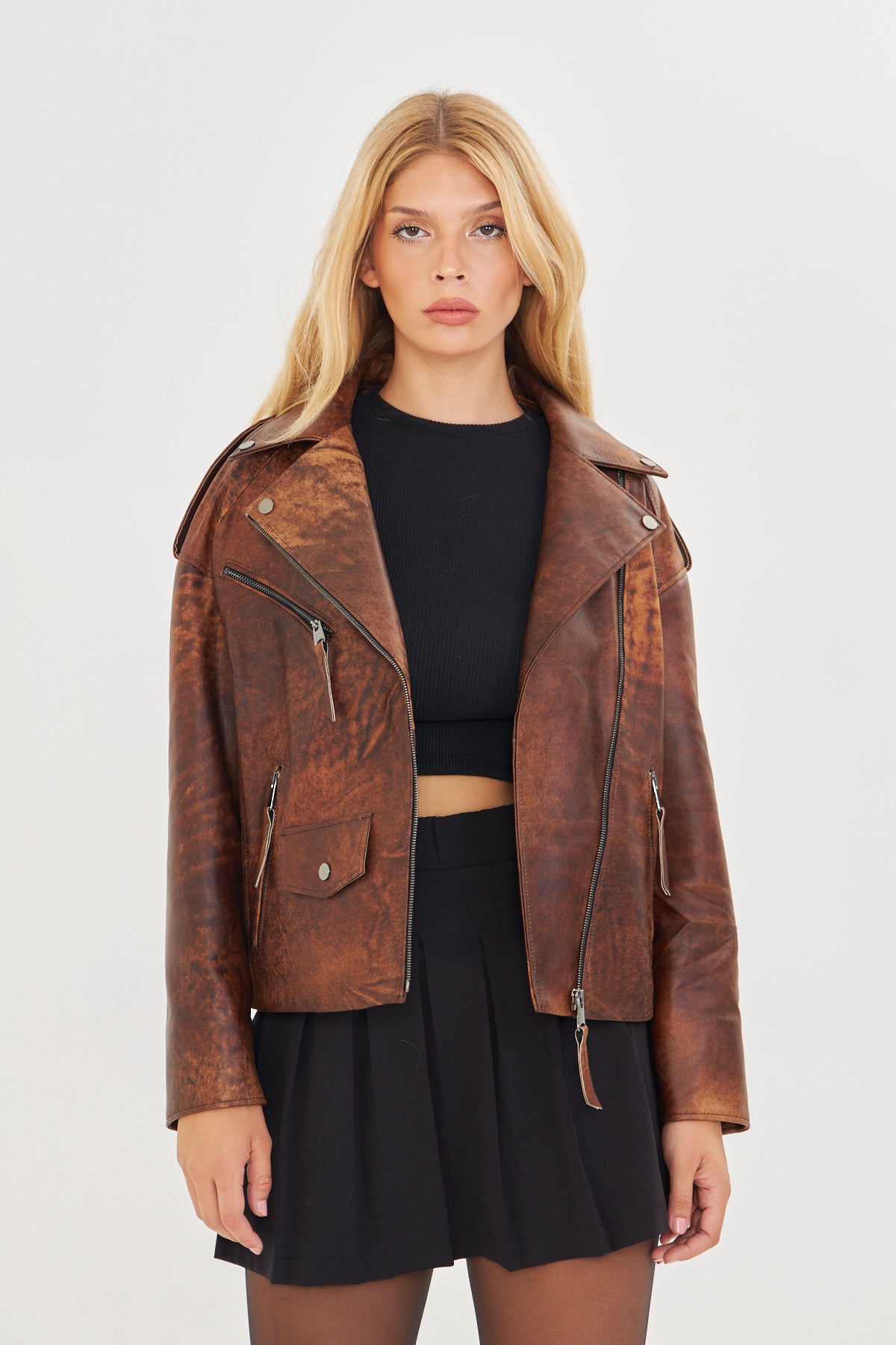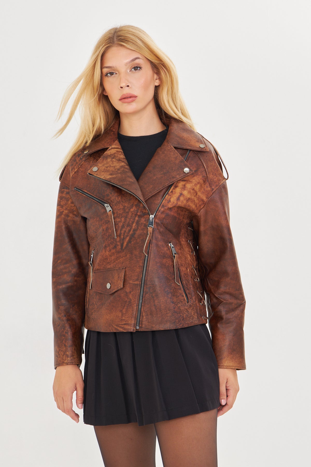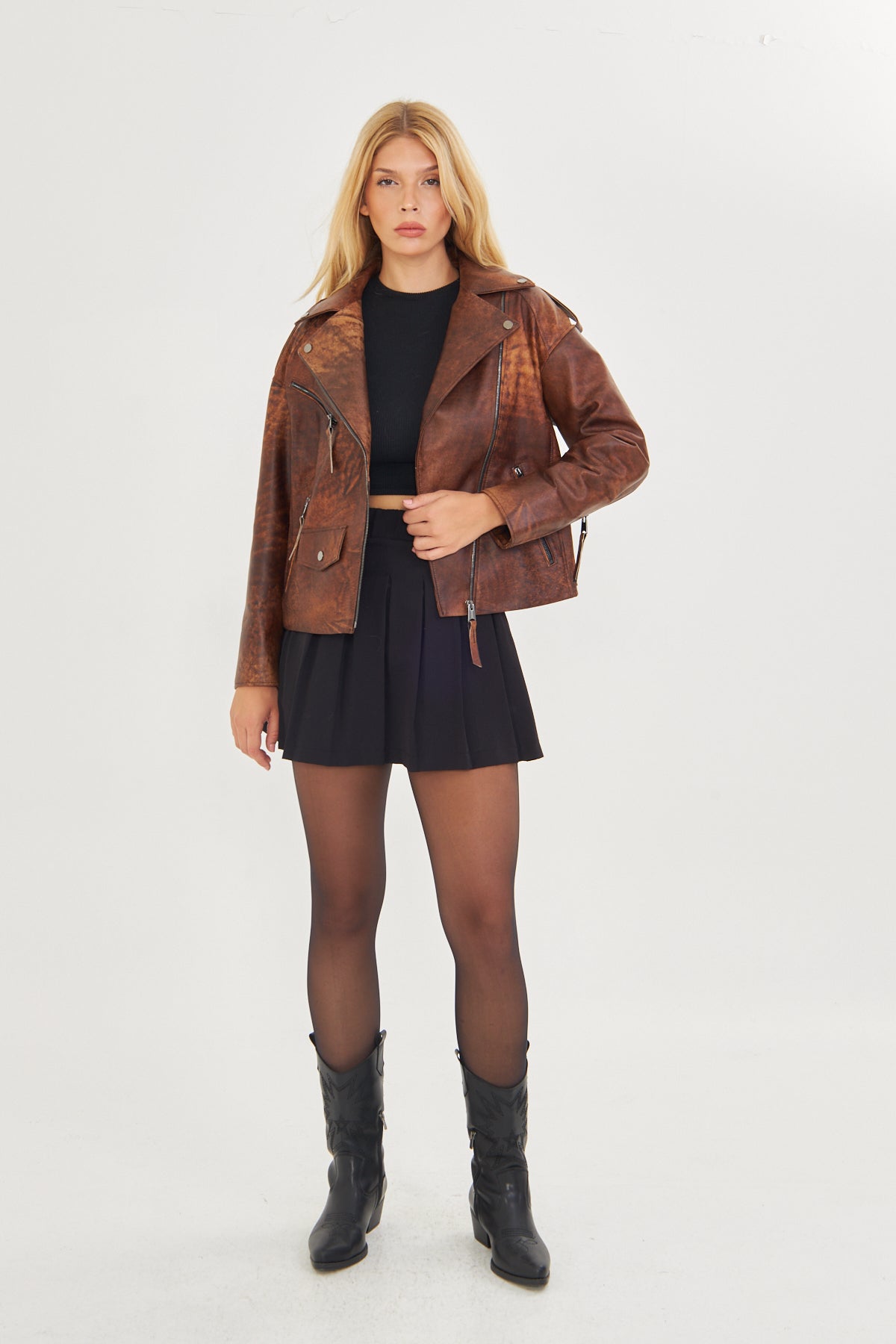 Kadın Astarlı Hakiki Kuzu Derisi Mont/ceket BDC139 (Geniş Kalıp)