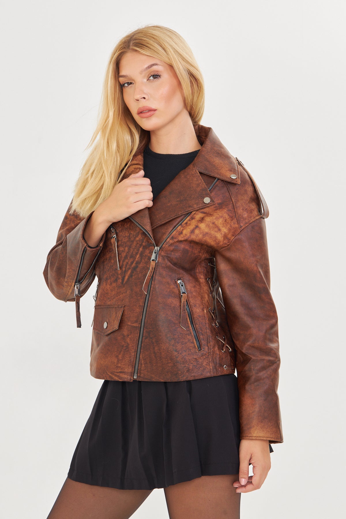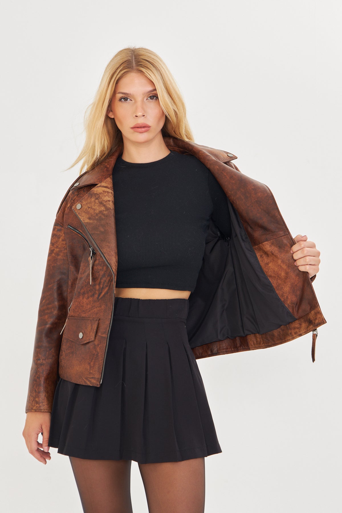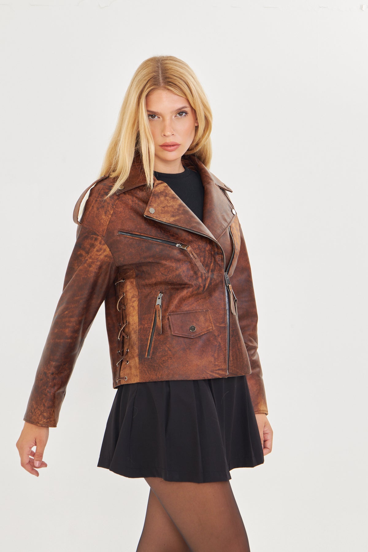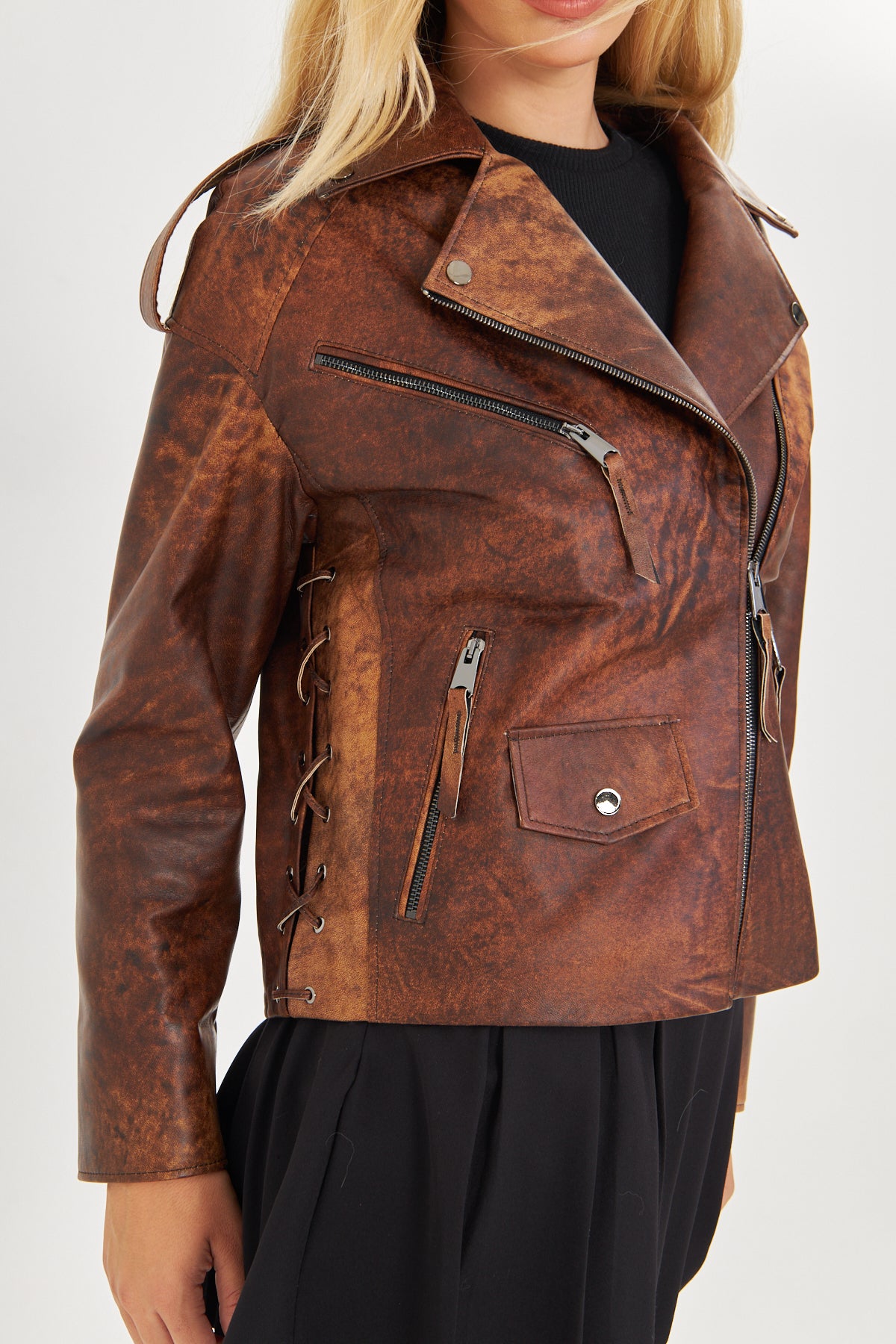 Kadın Astarlı Hakiki Kuzu Derisi Mont/ceket BDC139 (Geniş Kalıp)