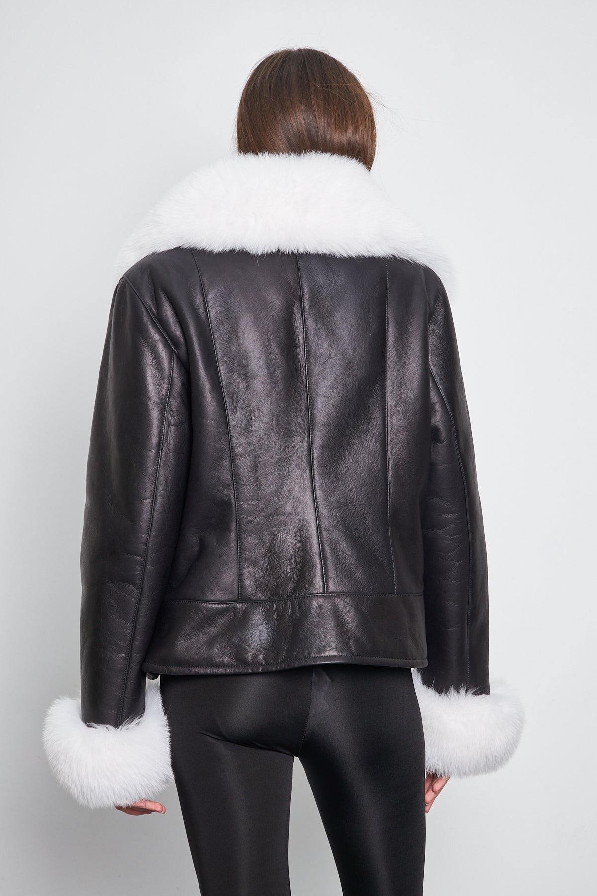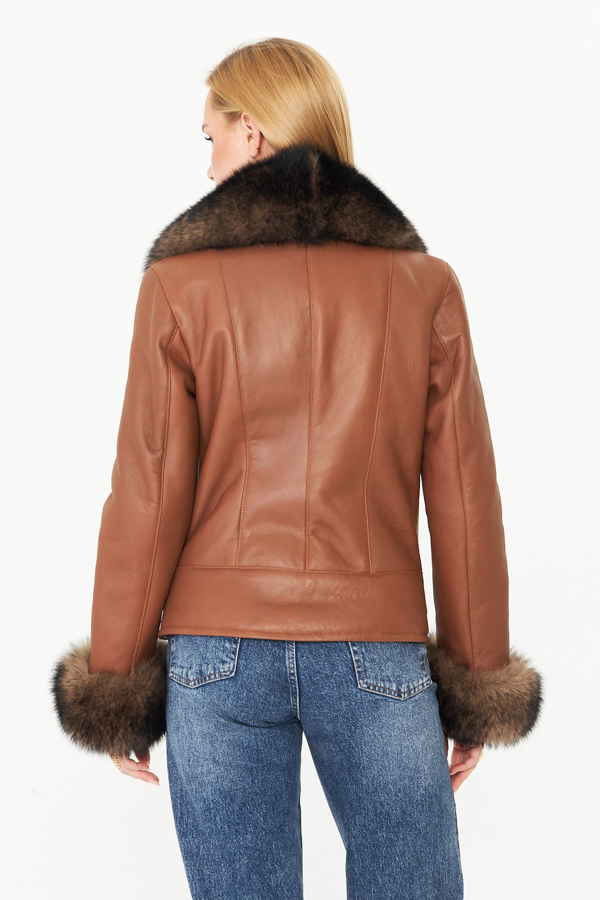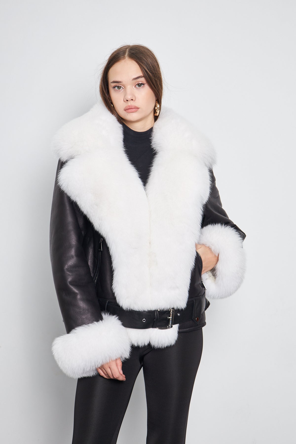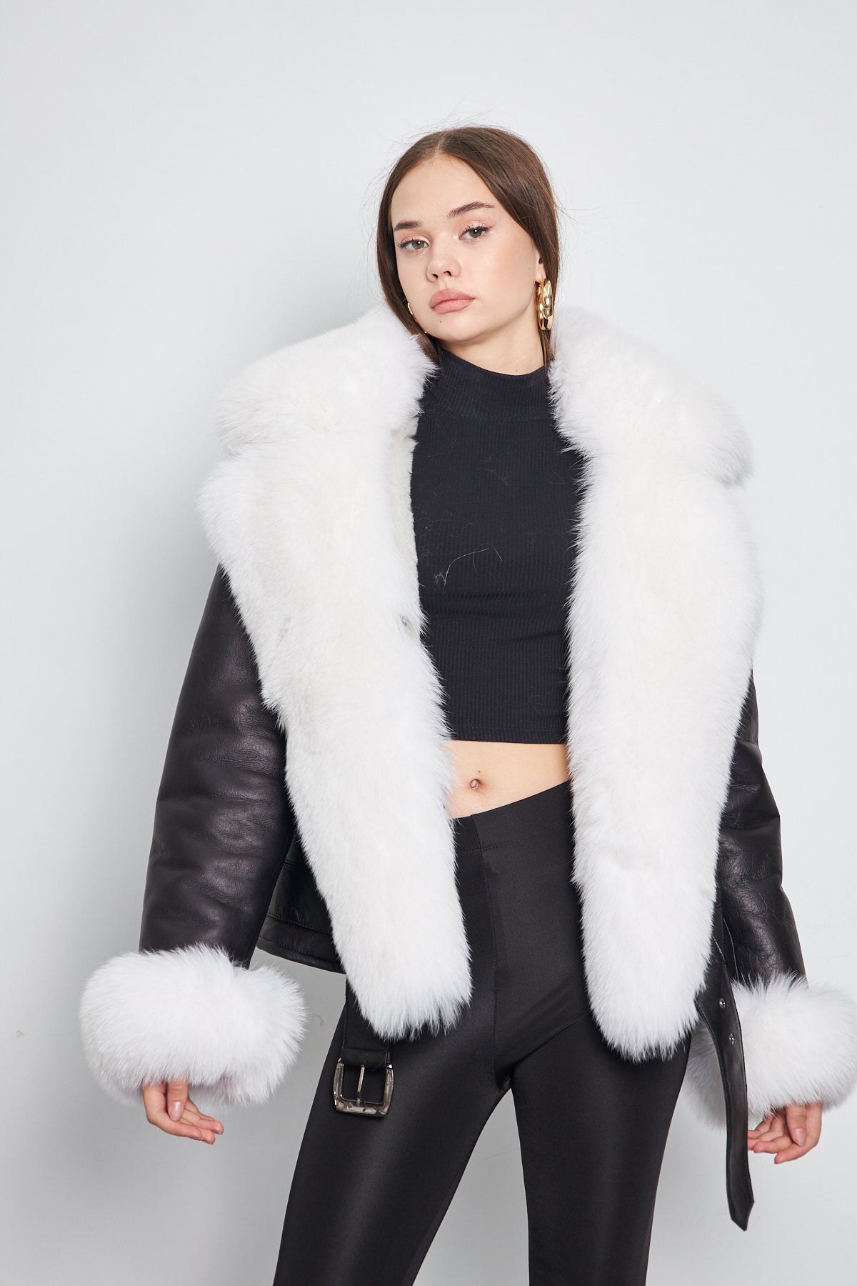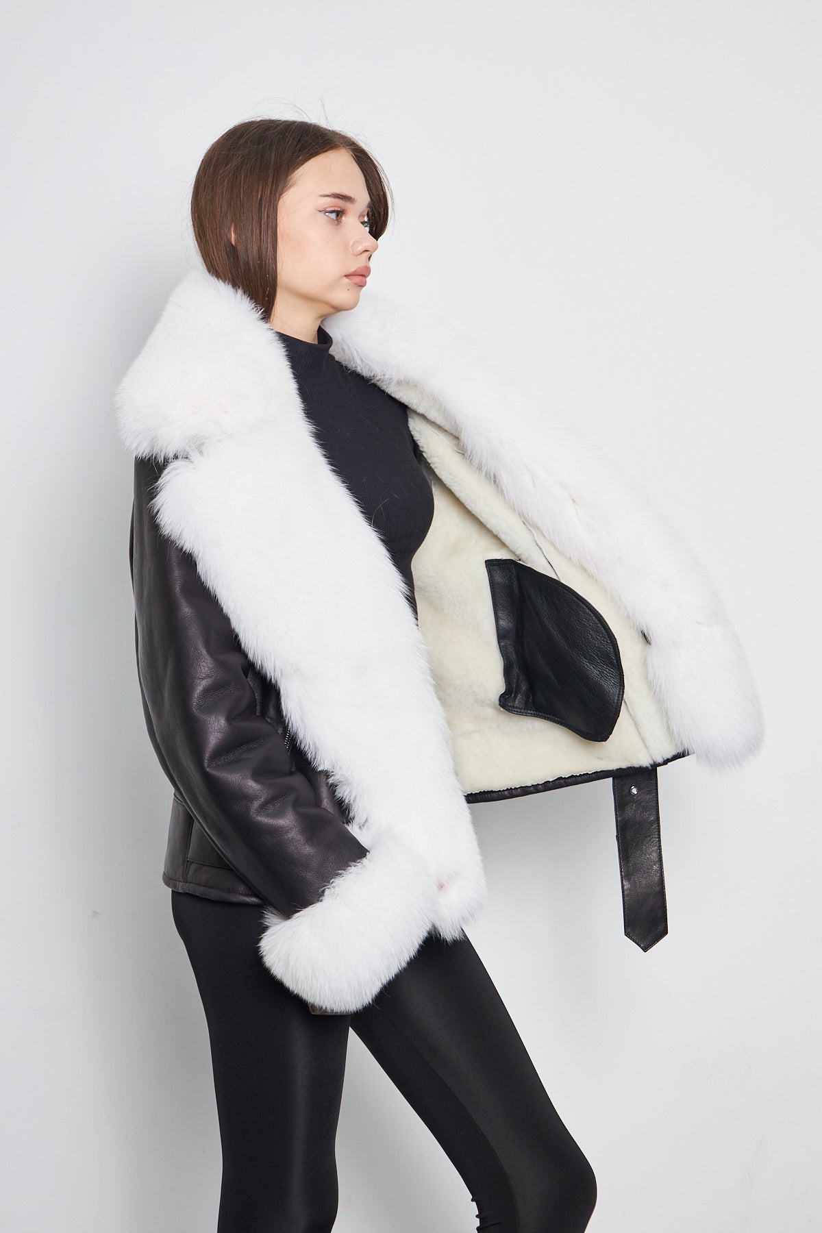 Kadın Tilki Aksesuarlı Hakiki Koyun Kürk Manto BDC122-OZEL6 (Dar Kalıp)