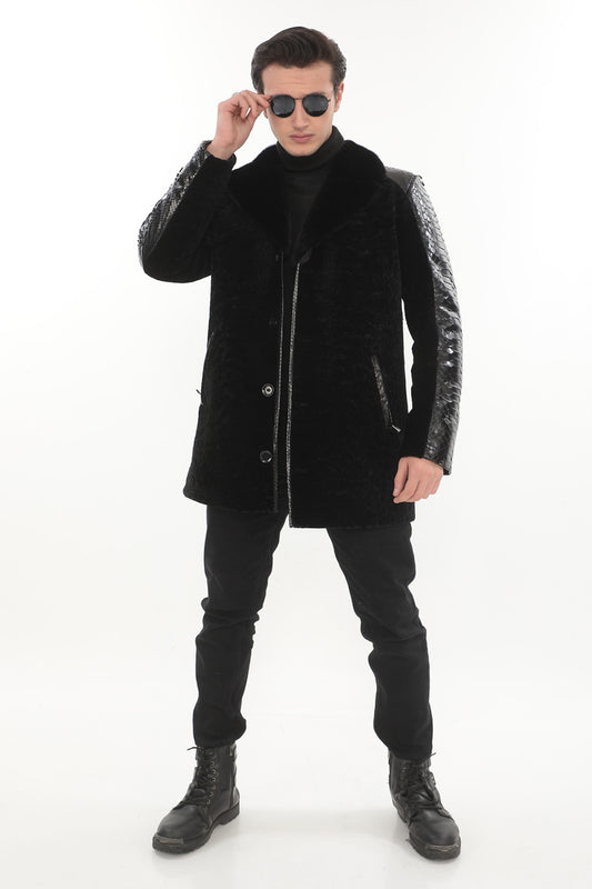Мужская шуба из натурального меха питона и каракуля EDC103 (стандартный крой)