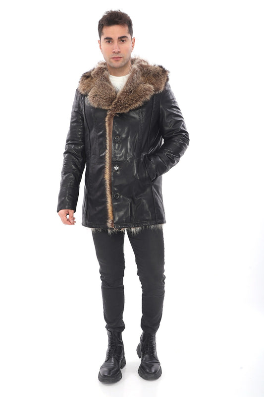 Мужское пальто из натурального меха волка Jumbo Leather/Fur EDC85 (стандартный крой)