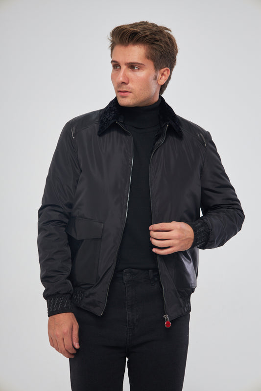 Мужская куртка/пальто из натуральной овчины и тафты EDC122 (приталенный крой)