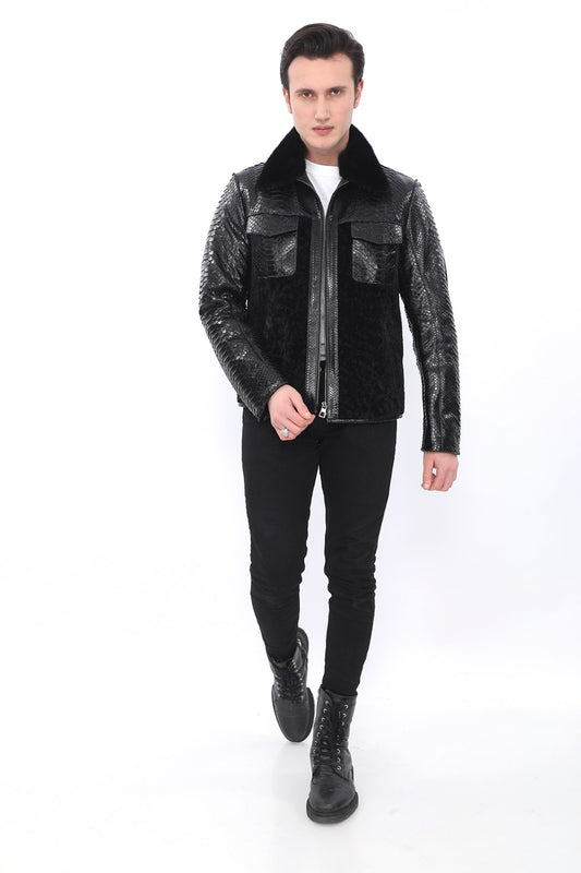 Мужская шуба из натурального меха питона и каракуля EDC132 (стандартный крой)